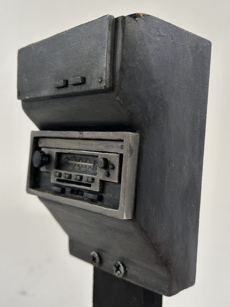 I made a 50% larger-scale car radio for an insert shot that matched the scale of the puppet’s hand. The radio needed to have a functional knob and channel wire. It is primarily constructed from MDF, with propoxy for details and polycarbonate for the rigging.